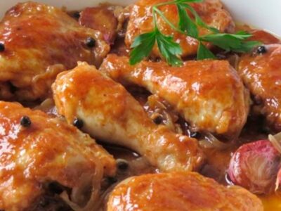 Trutros de pollo encebollados al café